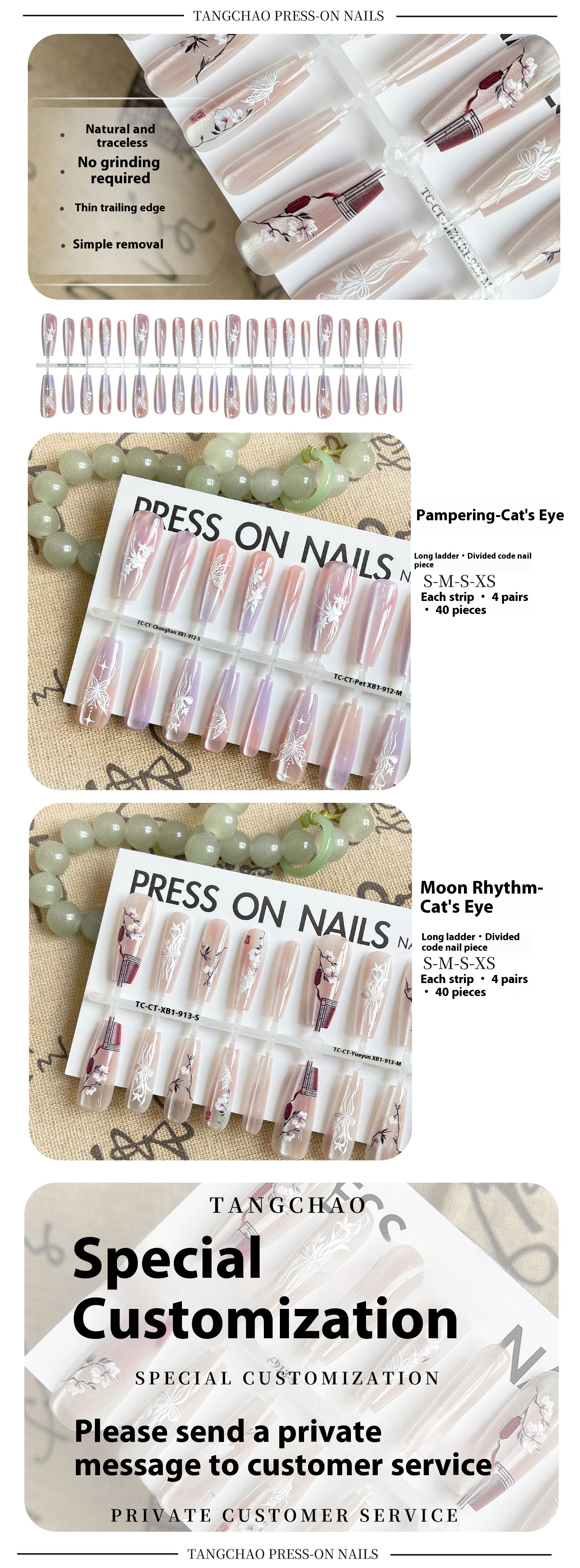 Ancient Chinese Style Cat Eye National Style Wear Fake Nails Long Ladder
