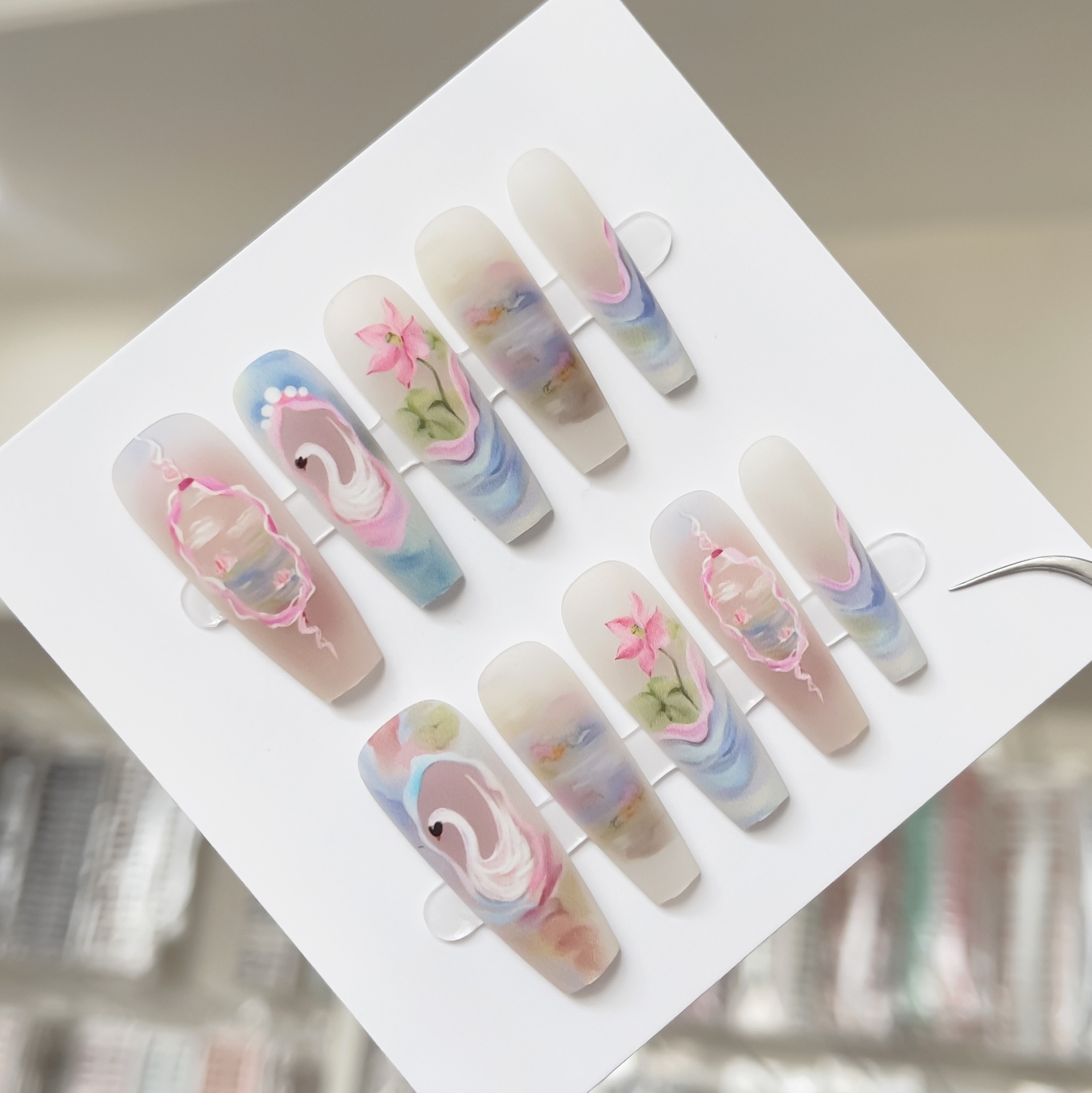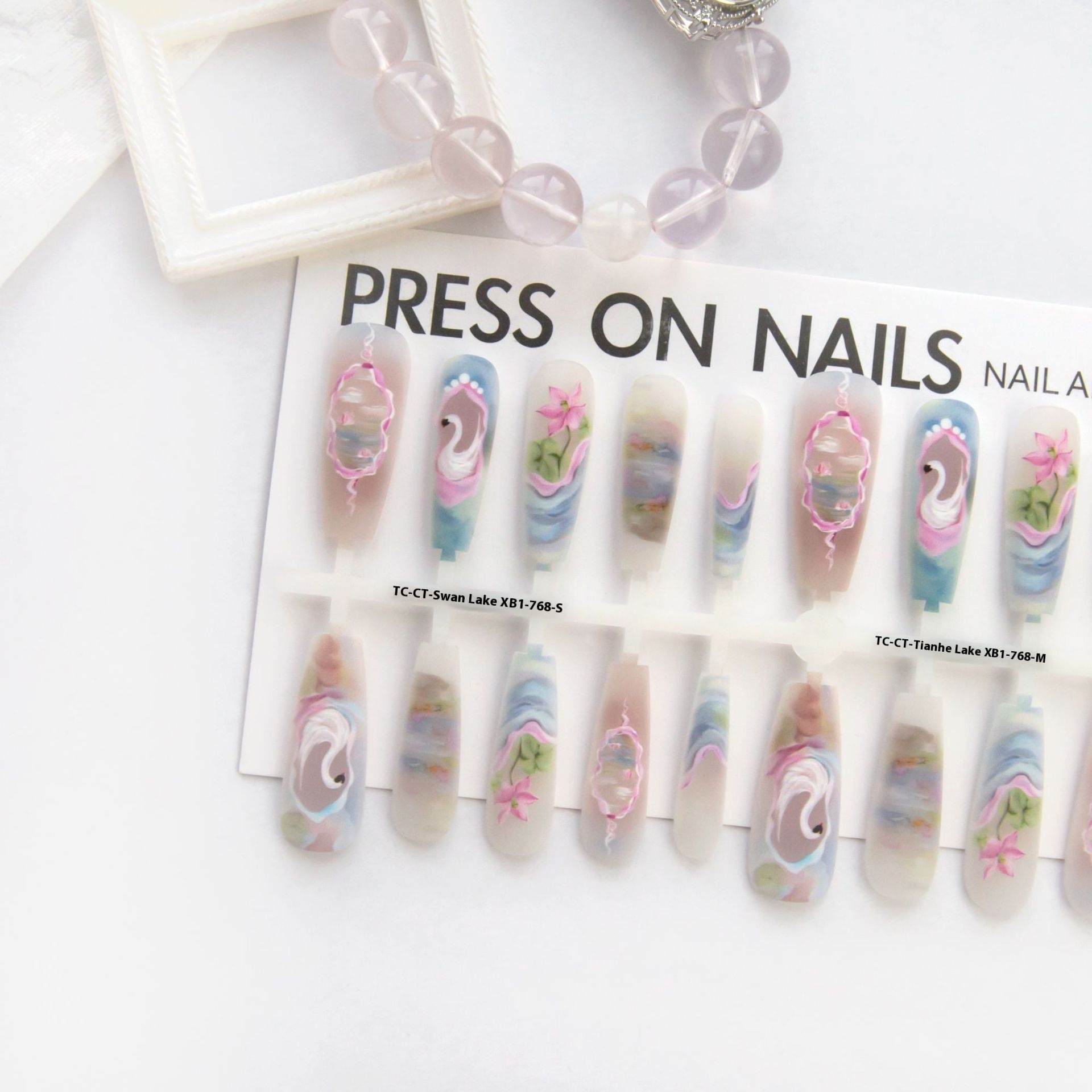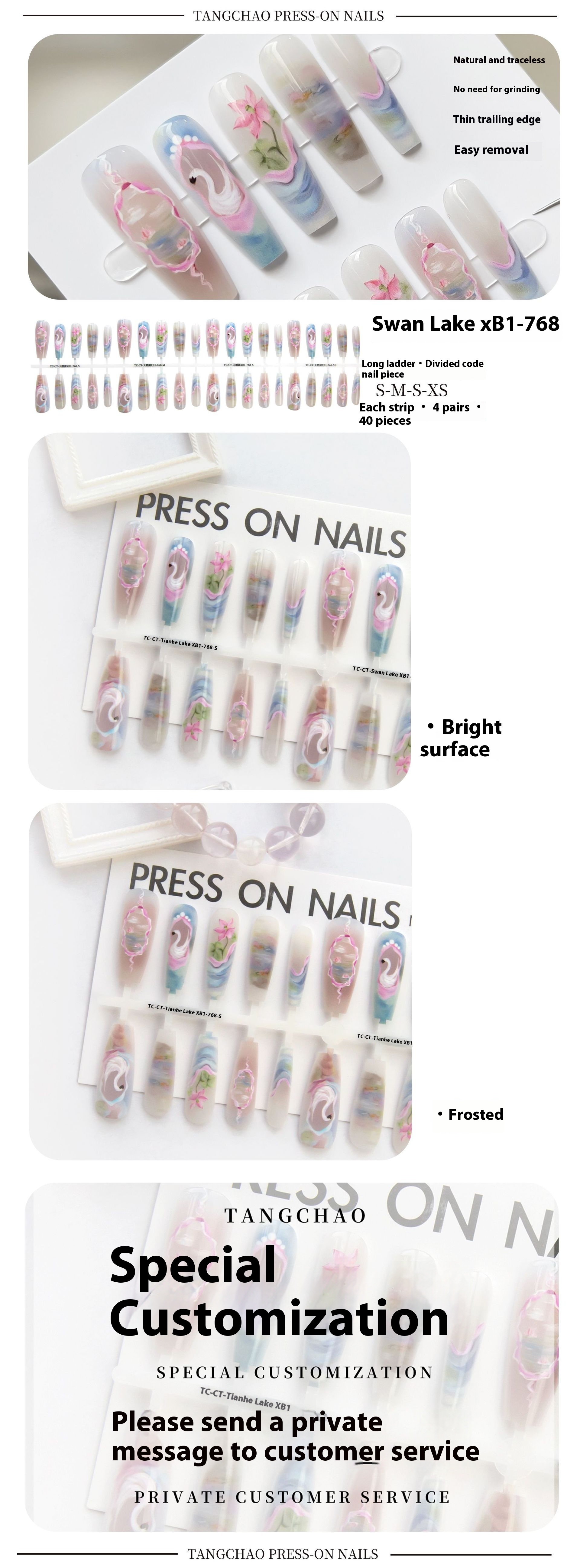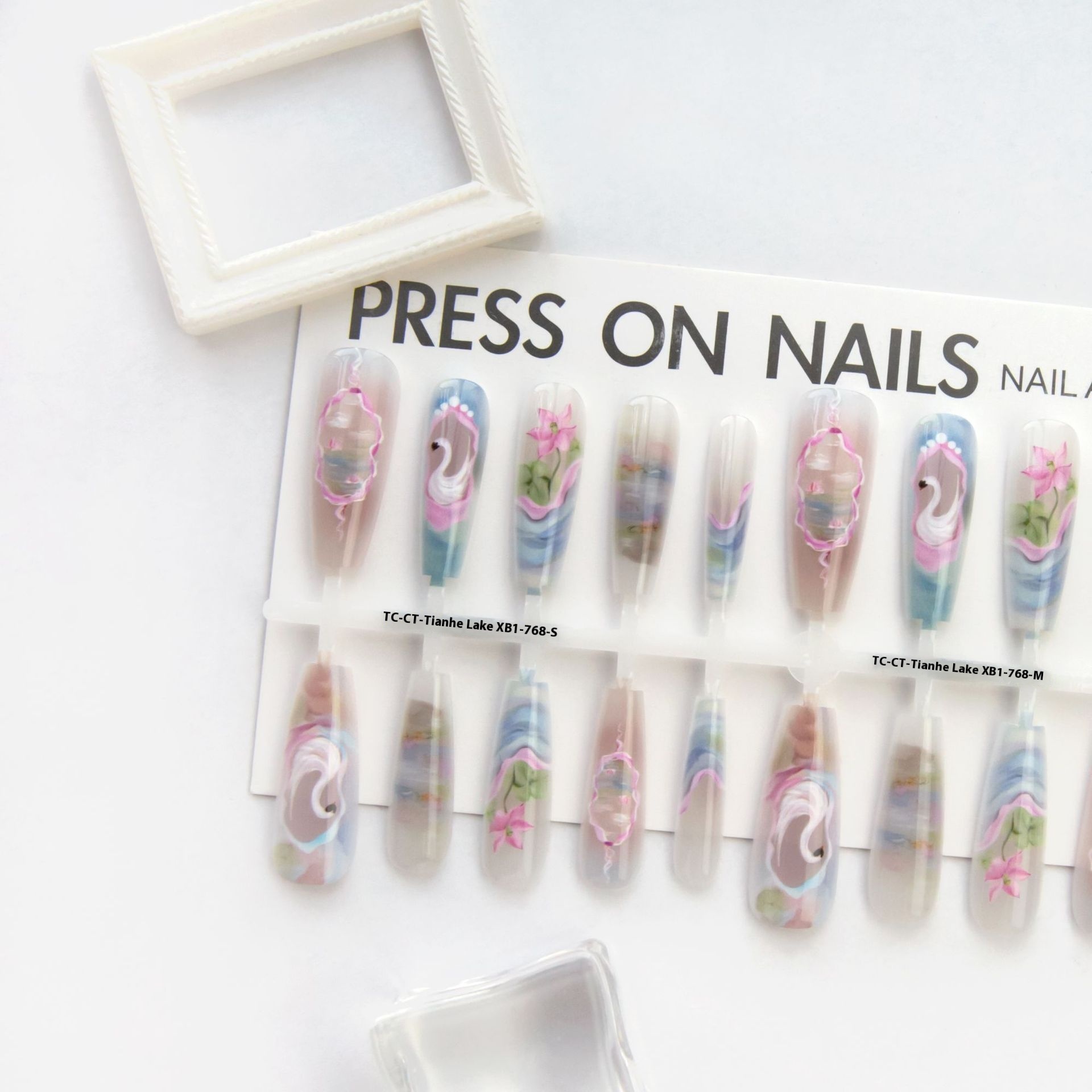 Ancient Style National Style Swan Lake Blooming Prefabricated Nail Tip Wear Armor