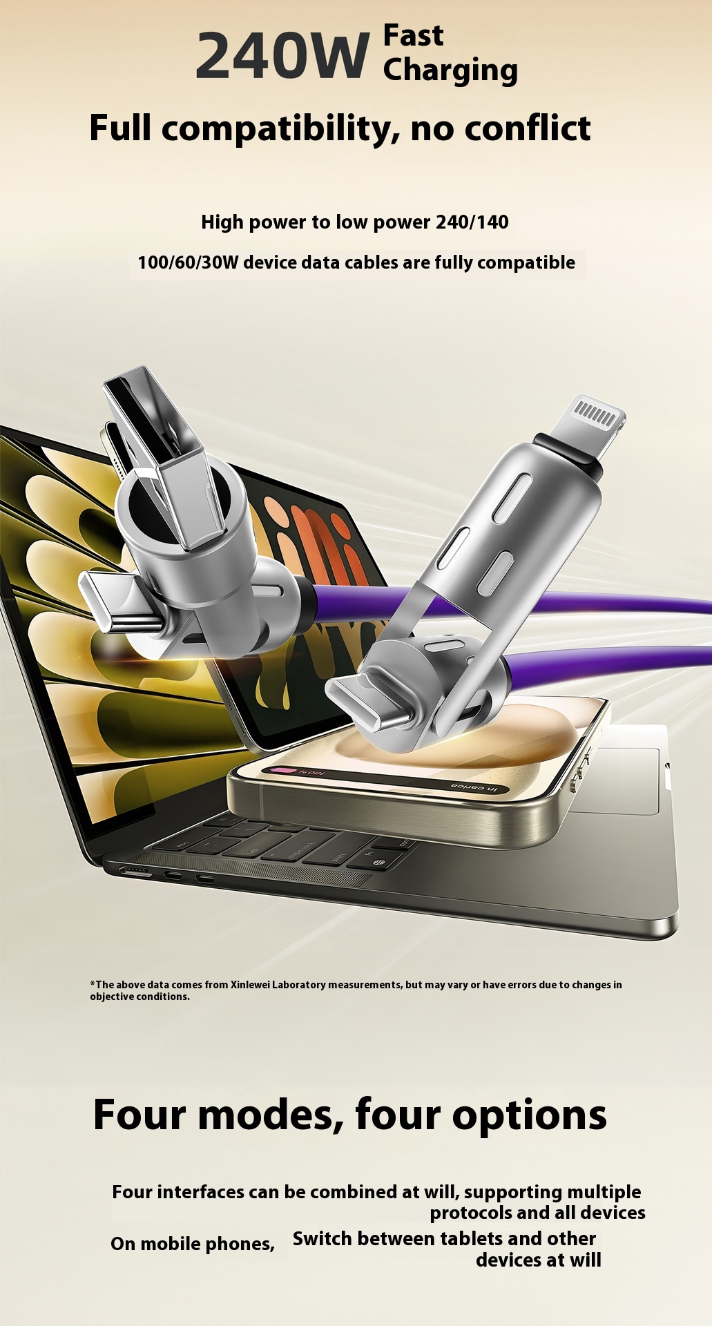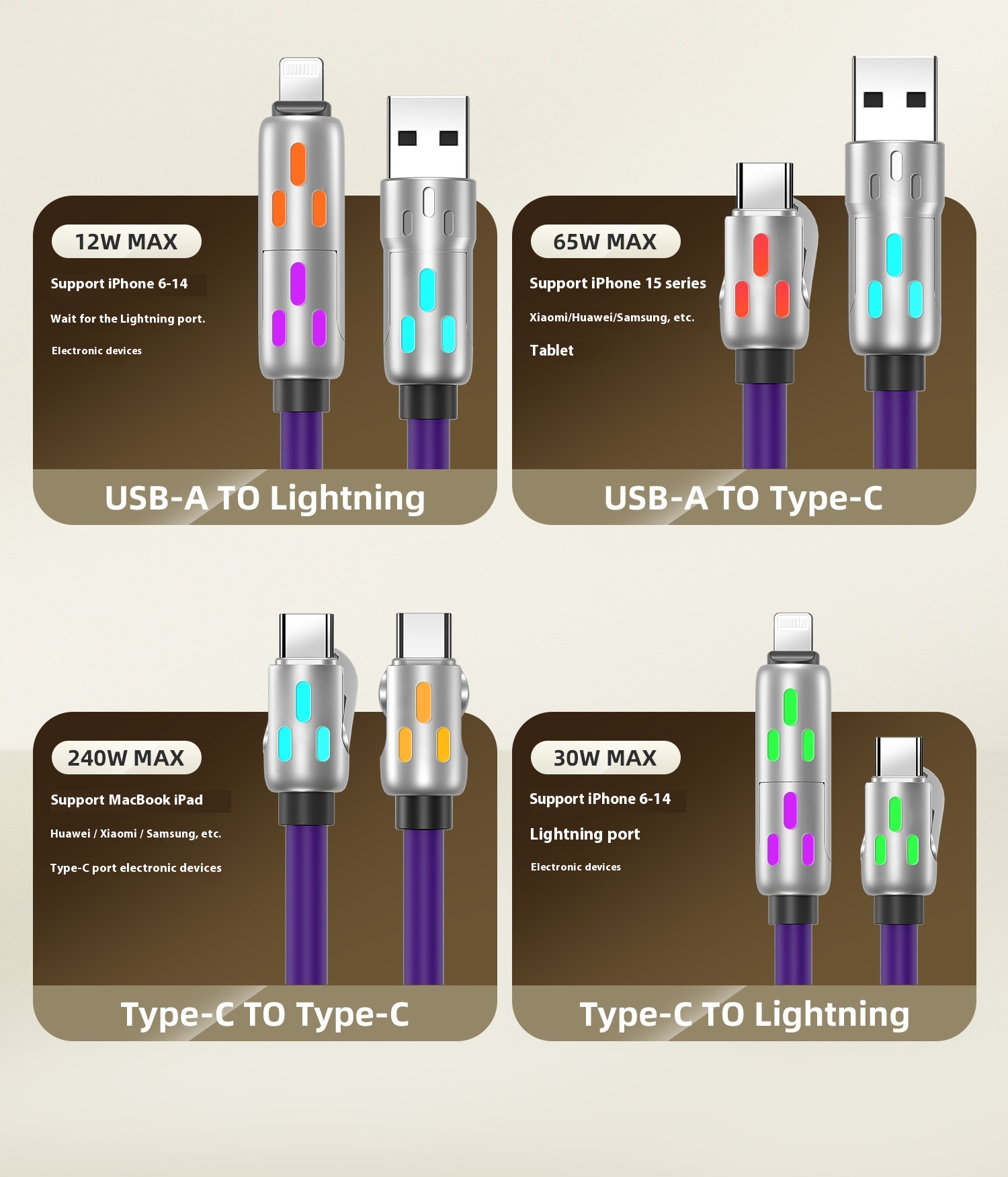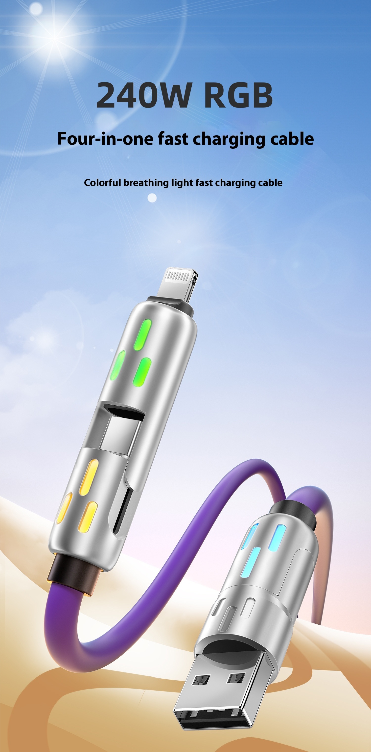 Four-in-one Fast Charge Data Cable Tpc Light Column Silicone Charging