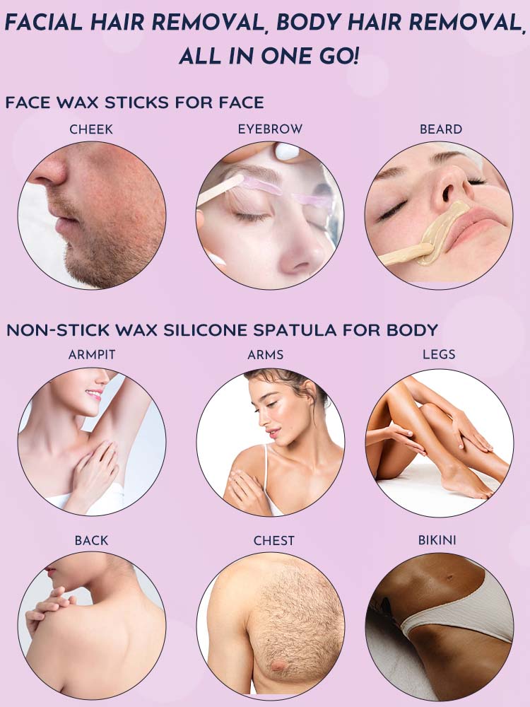 Hot Wax Hair Removal Accessories With Silicone Scraper, Wooden Stick , 8 Packs Of Wax Beans, Soothing Lotion, Soothing Ice Mask, Non-Woven Fabric, Disposable Gloves, Waxing Pot Washers, Nose Hair Stic